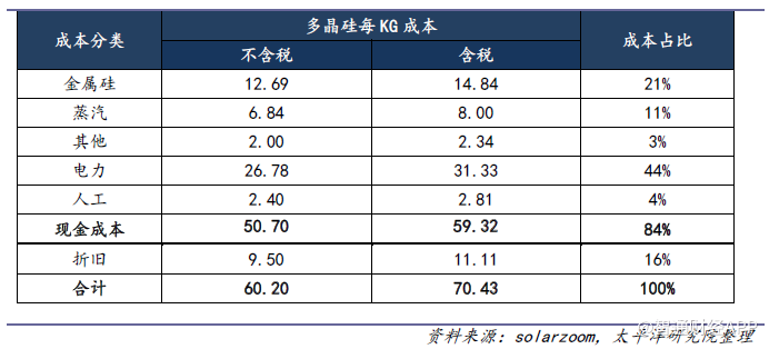 (多晶硅環(huán)節(jié)主要成本估計(改良西門子法))
