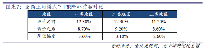 假設調價之后,電站依然要保持其原有的收益率水平,那么系統(tǒng)成本需要相應的降低11.33%-15.00%左右,這和降價幅度11.76%-15.38%基本相匹配。也就是說對于地面電站來說,10%的系統(tǒng)成本下降方可抵御10%的電價下調幅度。