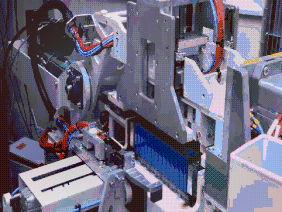 將電芯傳送到制定位置,機械手自動抓取送入模組裝配線。
