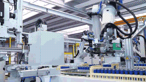 在寧德時代的車間內從自動搬運材料到為設備喂料100%實現(xiàn)了自動化