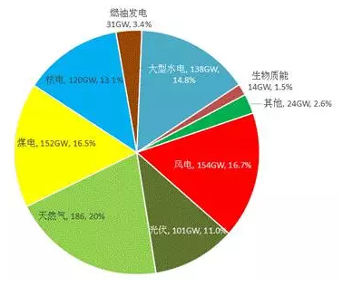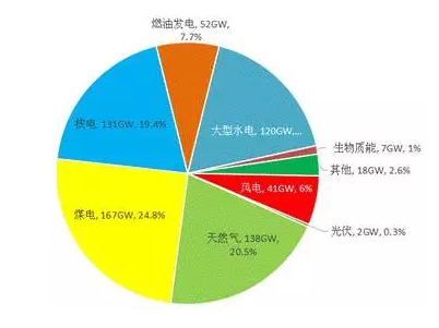 圖4 2016年歐盟各種電源裝機(jī)占比(GW、%)
