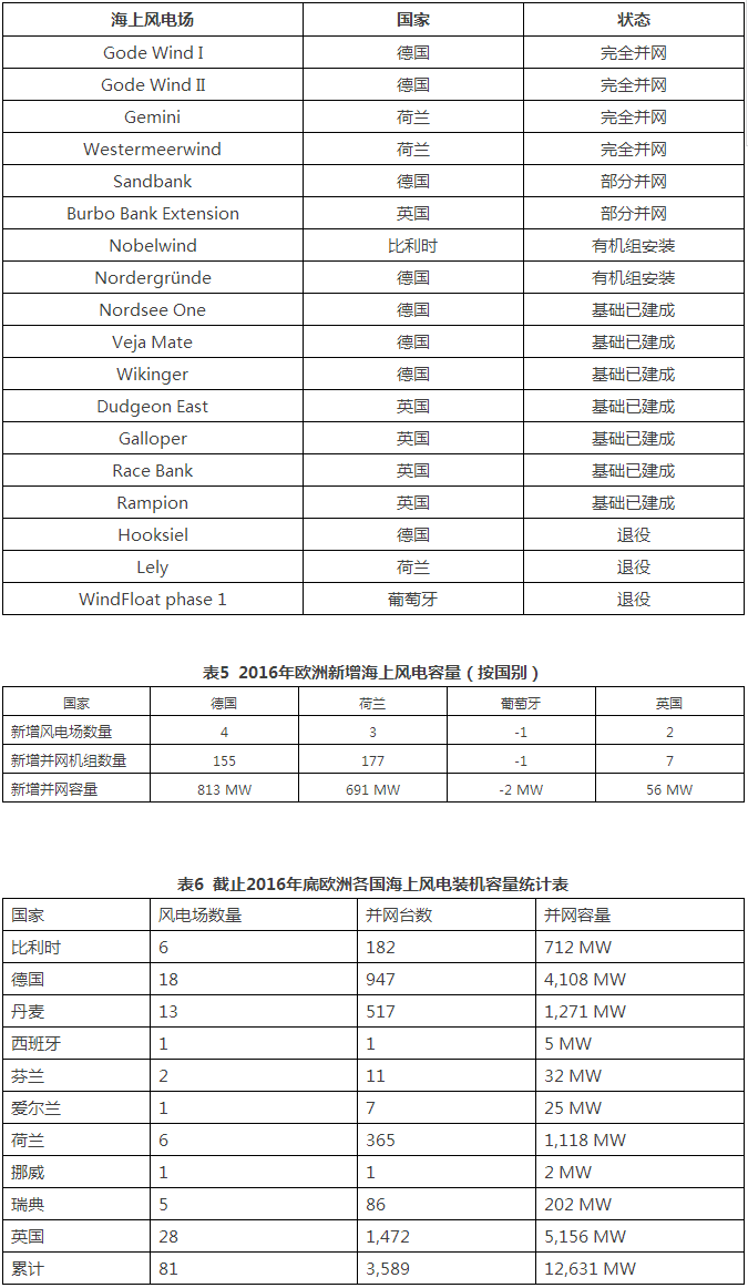 五、2016年歐洲海上風(fēng)電裝機(jī)概況