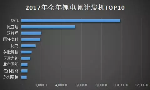 中國化學(xué)與物理電源行業(yè)協(xié)會秘書長劉彥龍?jiān)诮盏囊粓稣搲兄赋觯?017年前5家企業(yè)動力電池配套量占六成以上;前20家企業(yè)配套量占比87%。而根據(jù)該協(xié)會發(fā)布的2017年全年鋰電累計(jì)裝機(jī)排名(如上圖),企業(yè)鋰電配套占比與以上情況也大體一致。此外,中汽研相關(guān)數(shù)據(jù)同樣顯示,2017年前2家動力電池配套量占該年度總配套量的45%左右,前10家企業(yè)配套量占比近70%。由此可見,國內(nèi)動力電池行業(yè)集中度正在進(jìn)一步提升。