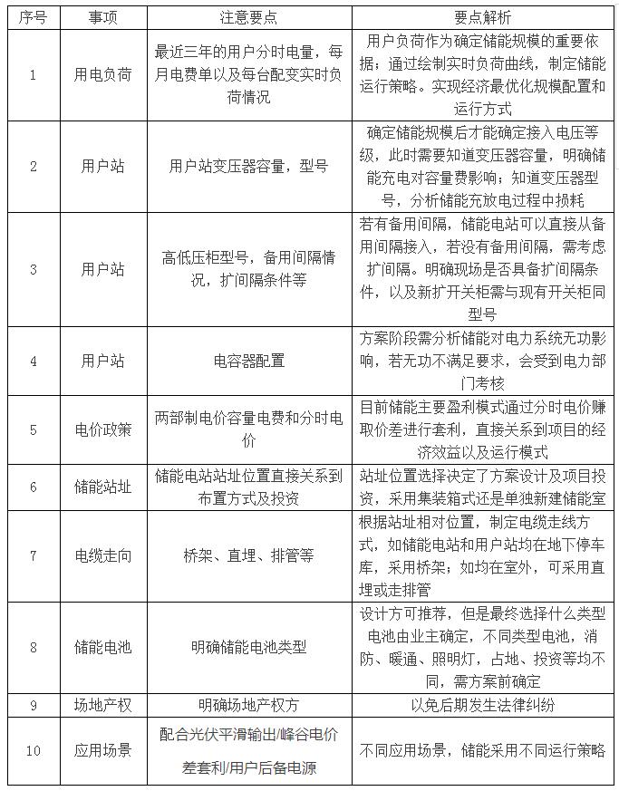 中國儲(chǔ)能網(wǎng)訊:儲(chǔ)能電站建設(shè)多大規(guī)模才能與用戶負(fù)荷良好互動(dòng)、實(shí)現(xiàn)什么樣的最優(yōu)化運(yùn)行方式才能獲得最大的經(jīng)濟(jì)效益、項(xiàng)目投資規(guī)模、盈利能力直接關(guān)系到能否吸引到投資方的關(guān)鍵。用戶方能夠得到多大的讓利,是否對(duì)用戶電力系統(tǒng)有影響直接關(guān)系到項(xiàng)目能否落地。這就對(duì)項(xiàng)目前期勘察提出了嚴(yán)格的要求,小智團(tuán)隊(duì)根據(jù)最近做的幾個(gè)儲(chǔ)能電站,總結(jié)了儲(chǔ)能電站現(xiàn)場勘察注意要點(diǎn)。