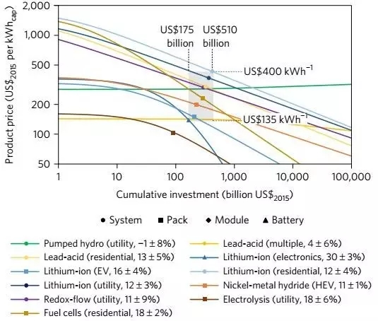 O. Schmidt et al. The future cost of electrical energy storage based on experience rates. Nature Energy 2017, 2, 17110.