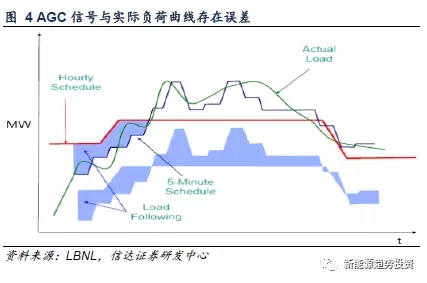 對于三次調(diào)頻來說,其主要應(yīng)用與在較長時間間隔下提交和調(diào)度資源,通常也被稱為實(shí)時平衡或者負(fù)荷跟蹤。我們以加州為例,CAISO通過每15min指派短期啟動和快速啟動機(jī)組以及每5min給機(jī)組發(fā)送調(diào)度指令來進(jìn)行負(fù)荷跟蹤,而對于二次調(diào)頻,每隔4s,AGC系統(tǒng)就會監(jiān)視ACE偏差并給提供調(diào)頻輔助服務(wù)的機(jī)組發(fā)送調(diào)度信號,因此在此我們主要討論儲能在二次調(diào)頻中的應(yīng)用及其效果。