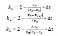 式中PS是系統(tǒng)初始出力,PE是系統(tǒng)的目標(biāo)出力,vN是標(biāo)準(zhǔn)調(diào)節(jié)速率(MW/min);ΔPN為調(diào)節(jié)允許的偏差量(MW);tst為標(biāo)準(zhǔn)響應(yīng)時間(s)。當(dāng)k1 、k2 、k3計(jì)算值小于0.1時,取值0.1。而k1 、k2 、k3的最大值為2,即k1 、k2 、k3的積最大為8,因此理論上來說在該公式下調(diào)頻效果最大可以差8000倍。