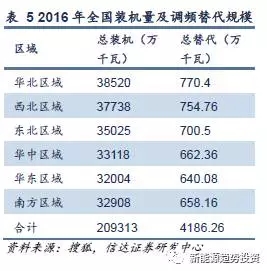 海外特別是歐洲及北美地區(qū),由于發(fā)達(dá)國家電改走在我們的前面,因此市場相對更成熟,調(diào)頻市場的需求也更強(qiáng)烈,如2014年歐洲總裝機(jī)量為14.11億千瓦,美國2016年裝機(jī)容量為11.84億千瓦,因此實(shí)際調(diào)頻市場規(guī)模預(yù)計(jì)分別可達(dá)到28.22GW、23.68GW。而從國內(nèi)來看,自2008年以來國內(nèi)裝機(jī)容量平均年增長率超過8%,我們認(rèn)為未來5年裝機(jī)量平均增長率仍將保持這一速度,因此年新增裝機(jī)量將有約1.5億千瓦,由此我們得出年調(diào)頻需求在1.5~2GW左右(由于無法得知年實(shí)際峰值負(fù)荷,因此以裝機(jī)量近似代替)。