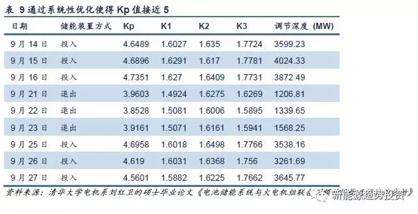 儲能參與AGC調(diào)頻效果顯著。在現(xiàn)有的政策及技術(shù)條件下,儲能由于無法作為獨(dú)立主體參與到市場中,因此目前儲能參與調(diào)頻市場的方式是與火電形成一個混合機(jī)組。根據(jù)華北區(qū)域的細(xì)則,理論上最好的調(diào)頻效果與最差的調(diào)頻效果之間可以相差近8000倍。實(shí)際應(yīng)用中,投入前K2和K3的平均值分別在1.4和1.5左右,投入后上升到1.5和1.6左右,Kp值從2.98上升到3.2左右,后期通過進(jìn)一步優(yōu)化使得Kp值提升到接近5,體現(xiàn)了儲能在調(diào)頻方面具有非常優(yōu)越的性能。
