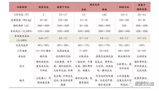 對鉛炭電池、鋰離子電池、液流電池、鈉硫電池、鋰離子超級電容進(jìn)行了比較,未來在儲能應(yīng)用環(huán)境下,更關(guān)心全周期使用過程中的系統(tǒng)度電成本,其綜合了循環(huán)壽命和系統(tǒng)成本兩個影響因素,就當(dāng)前指標(biāo)而言,我們認(rèn)為: