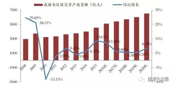 受益于 3G、4G 網(wǎng)絡(luò)建設(shè)的刺激因素下,電信固定資產(chǎn)投資 規(guī)模增速明顯上升,未來在 5G 建設(shè)的帶動下將繼續(xù)保持平穩(wěn)增長。按一般通信基站的配置要求,后備電源需求大約 占總投資的 2%~3%,預(yù)計(jì)“十三五”期間后備電源市場規(guī)模有望超過 500 億元,一方面通過改造后備電源系統(tǒng)增 加其儲能功能,盤活存量市場,另一方面通過設(shè)計(jì)一體化集成方案,開拓新增市場,更大程度地為客戶實(shí)現(xiàn)節(jié)能套利。