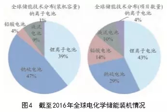 鈉硫電池是目前累計裝機量最大的電化學儲能技術,占有47%的份額(截至2016年8月,如圖4所示),鋰離子電池則是應用領域最廣的儲能技術,項目數(shù)量占到42%,未來鋰離子電池儲能將繼續(xù)快速增長。