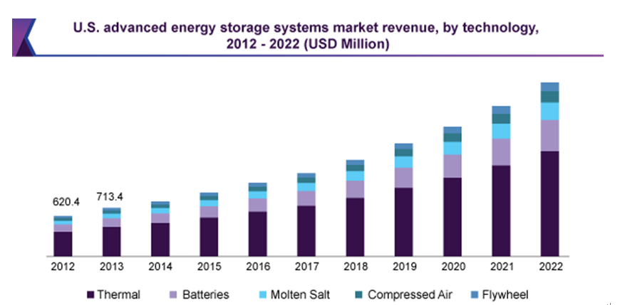 中國(guó)儲(chǔ)能網(wǎng)訊:根據(jù)調(diào)研機(jī)構(gòu)Grand View Research公司公布的最新調(diào)查報(bào)告,預(yù)計(jì)到2022年全球儲(chǔ)能系統(tǒng)市場(chǎng)規(guī)模將達(dá)到69.3億美元。由于對(duì)公用事業(yè)規(guī)模能源發(fā)電需求的增加(特別是在電力高峰時(shí)段),對(duì)儲(chǔ)能系統(tǒng)的需求預(yù)計(jì)也將會(huì)增加。儲(chǔ)能系統(tǒng)可以有效地管理電力資源,從而消除了對(duì)公用事業(yè)規(guī)模的發(fā)電機(jī)組的發(fā)電需求。這一因素顯著降低了固定發(fā)電成本,因此在推動(dòng)全球電力市場(chǎng)增長(zhǎng)方面發(fā)揮著至關(guān)重要的作用。