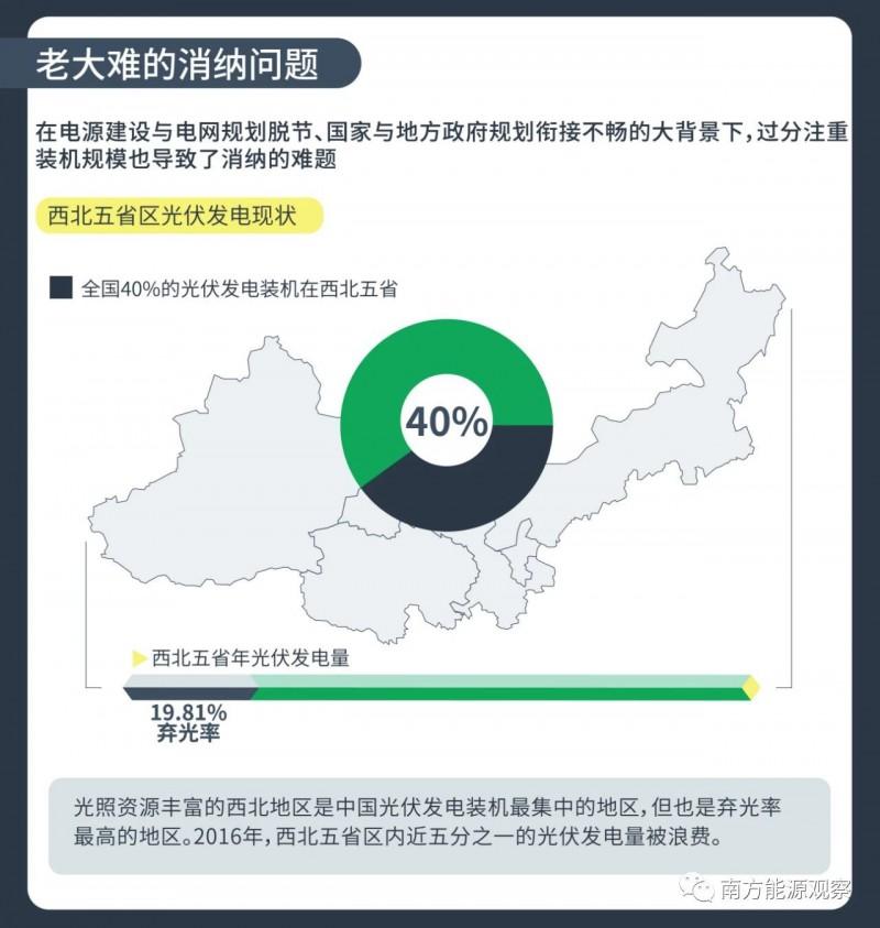 由于電源建設(shè)與電網(wǎng)規(guī)劃脫節(jié),當(dāng)?shù)叵{能力有限,在電網(wǎng)規(guī)劃尚未落實(shí)的情況下,大規(guī)模光伏電站投產(chǎn)以后出現(xiàn)并網(wǎng)困難的問題。國(guó)家能源局?jǐn)?shù)據(jù)顯示,2016年西北五省區(qū)(陜西、甘肅、青海、寧夏、新疆)平均棄光率高達(dá)19.81%,相當(dāng)于近五分之一的光伏發(fā)電量被浪費(fèi)。