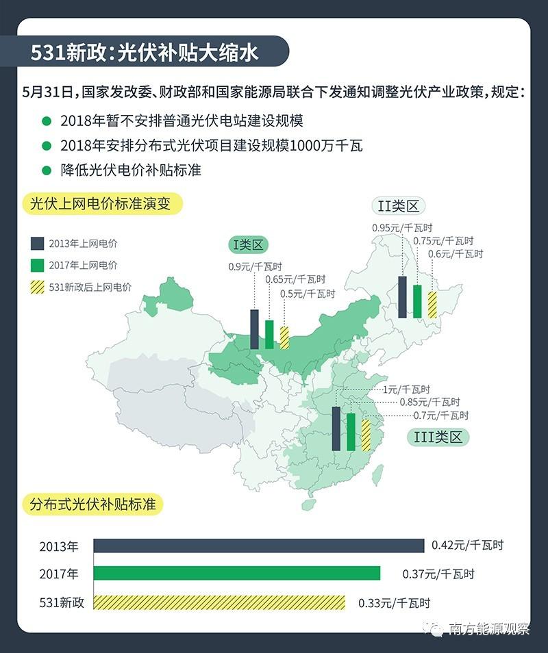 這是中國(guó)光伏“531新政”后的一個(gè)行業(yè)縮影。“531新政”是國(guó)家發(fā)改委、財(cái)政部、國(guó)家能源局聯(lián)合下發(fā)的一份關(guān)于控制光伏發(fā)電新建規(guī)模和加快補(bǔ)貼退坡的通知,因從2018年5月31日起實(shí)施而得名,也因其推出的突然性,而對(duì)光伏產(chǎn)業(yè)產(chǎn)生巨大震動(dòng)。