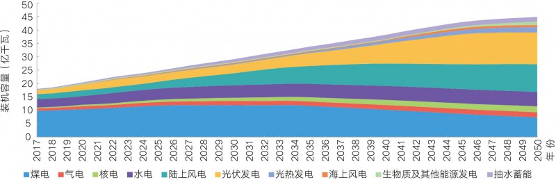 陸上風電、光伏發(fā)電將是未來發(fā)展速度最快的電源,2050年兩者裝機占比將超過50%,發(fā)電量占比將達到40%左右。為解決風光大規(guī)模發(fā)展帶來的電力電量平衡與調(diào)峰問題,氣電、水電、核電等并不會因風電、太陽能發(fā)電更具成本優(yōu)勢而停止發(fā)展,但分別受到價格、資源、站址的限制,增長空間有限;煤電完成角色轉(zhuǎn)換后將繼續(xù)發(fā)揮重要作用,各類電源呈現(xiàn)協(xié)調(diào)發(fā)展態(tài)勢。