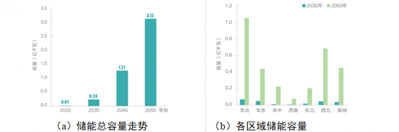 需求側(cè)資源將在未來我國電力系統(tǒng)中發(fā)揮重要作用,能效電廠、需求響應容量穩(wěn)步增長,2050年資源規(guī)模將分別達到4.5億千瓦、3.7億千瓦左右。電池儲能在2030年之后迎來快速增長,2050年裝機將達3億千瓦以上。