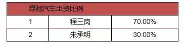 工商信息顯示,綠馳汽車目前的股東結(jié)構(gòu)很簡單。兩個自然人程三崗和朱承明持股七三開。