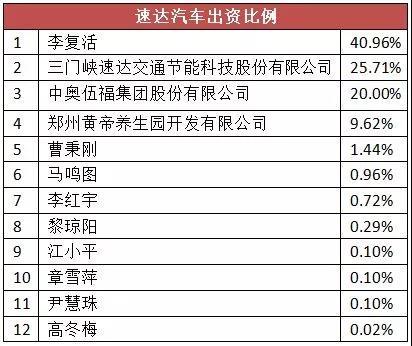 目前的工商信息顯示,速達汽車董事長李復活持有超4成股權(quán)。而第二大股東三門峽速達交通節(jié)能科技股份有限公司(速達科技,新三板上市公司),也是李復活實際控制的公司,持有近四分之一股份。兩項相加,李復活持有近65%股份。
