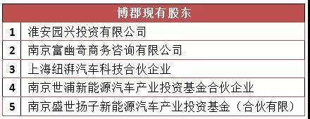 據(jù)南京日報報道,2016年12月22日,由中科招商投資管理集團股份有限公司與浦口經(jīng)濟開發(fā)區(qū)共同發(fā)起、總規(guī)模達50億元人民幣的南京浦口新能源汽車產(chǎn)業(yè)基金揭牌。中科招商是博郡汽車最早投資者,和南京浦口對接之后,雙方一起孵化博郡。該基金即投資博郡汽車。從2017年底的工商信息看,南京世浦新能源汽車產(chǎn)業(yè)投資基金合伙企業(yè)占有34.29%的股份。