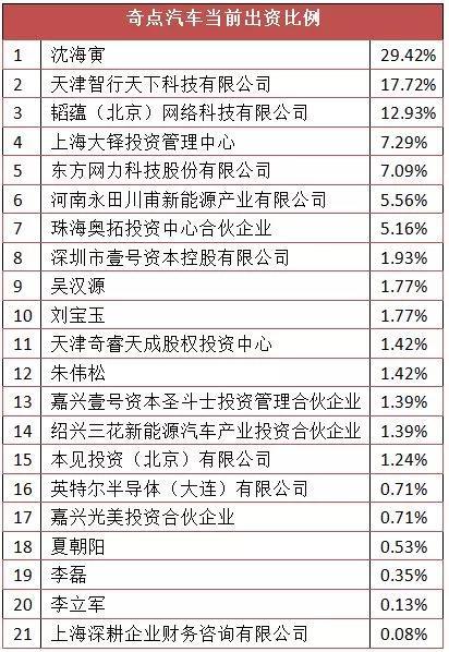 奇點汽車的主要股東方面,首先沈海寅和天津智行(沈海寅100%控股)分別持有29.42%和17.72%的股份。