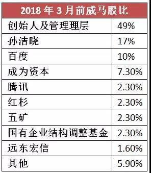 威馬的融資說明書顯示,持股較多的股東分別是創(chuàng)始團隊、個人投資者孫曉潔、百度、成為資本、騰訊、紅杉、五礦、國有企業(yè)結(jié)構(gòu)調(diào)整基金和遠東宏信。