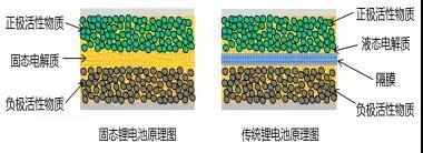 固態(tài)鋰電池與傳統(tǒng)鋰電池的技術(shù)原理示意圖