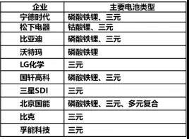 2017年全球前十動(dòng)力電池企業(yè)主要電池類型