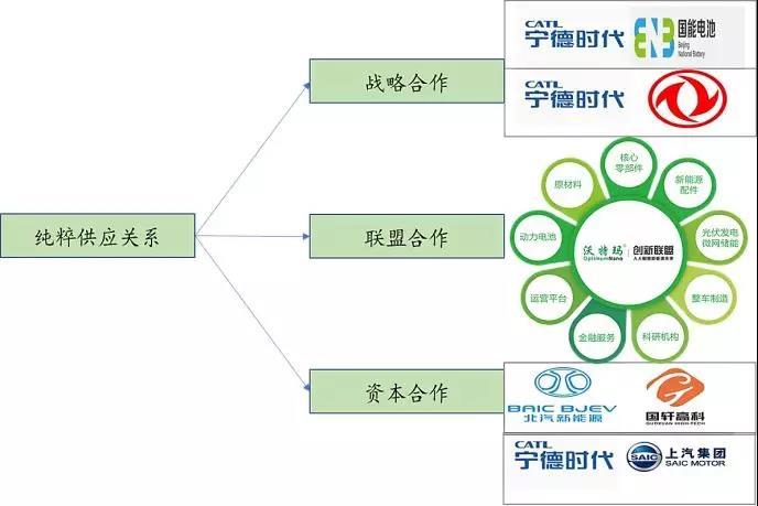 目前電池企業(yè)與車企已經(jīng)不滿足于簡(jiǎn)單的供求關(guān)系,越來(lái)越多的企業(yè)選擇更深層次的戰(zhàn)略合作,例如戰(zhàn)略合作、聯(lián)盟合作和合資等合作模式。
