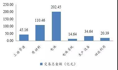 2017年動(dòng)力電池行業(yè)投資火爆:不完全統(tǒng)計(jì)國(guó)內(nèi)動(dòng)力電池相關(guān)投資項(xiàng)目多達(dá)100個(gè),總投資額超過(guò)2159億元。31個(gè)典型并購(gòu)事件涉及交易金額427.74億元,涉及上游資源和材料、中游電池生產(chǎn)及裝備及下游回收利用環(huán)節(jié)。