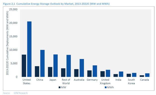 美國企業(yè)和實驗室在開發(fā)電網(wǎng)儲能方面發(fā)揮了先導(dǎo)作用,因此,其早期的部署超過其他國家是理所當(dāng)然的。GTM研究公司儲能研究主管Ravi Manghani說,大量部署電池儲能系統(tǒng)的關(guān)鍵是其創(chuàng)新的市場設(shè)計。