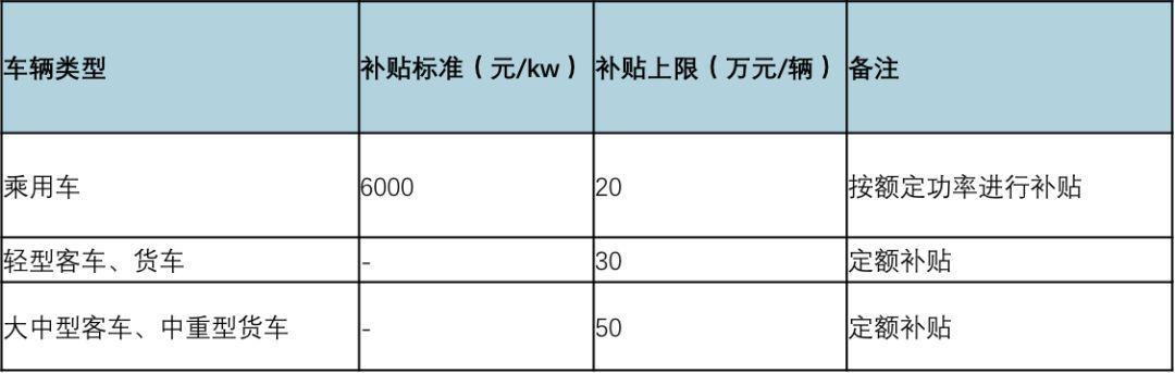 燃料電池汽車地方補貼標(biāo)準(zhǔn)