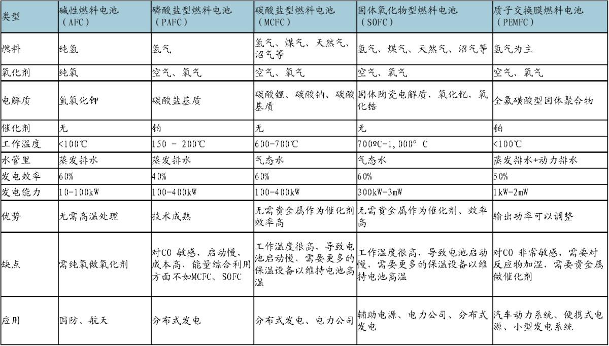 各類燃料電池指標(biāo)及應(yīng)用領(lǐng)域概述
