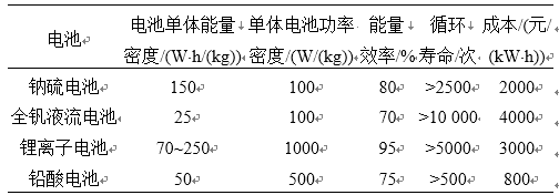 從表1中可以看出,在實際工程應用當中,鋰離子電池、鈉硫電池、液流電池等均可作為電池儲能系統(tǒng)的組成單元。它們因其不同的安全性、能量密度、循環(huán)壽命和成本等(如表2所示)具有不同的應用場景。