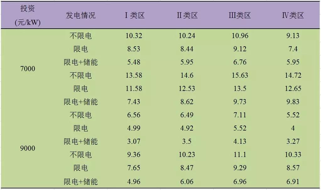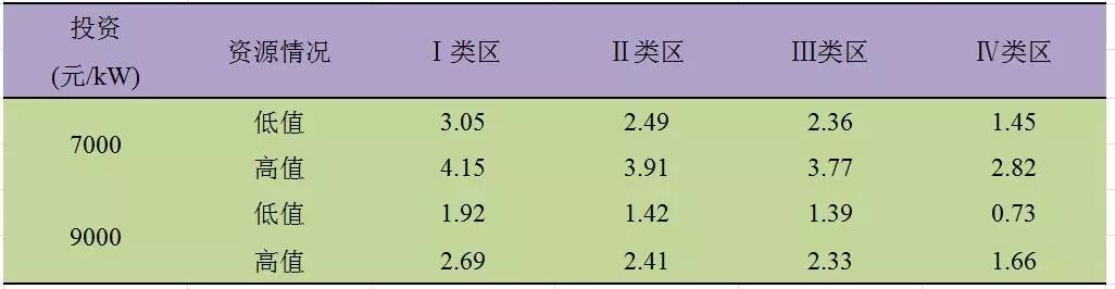 Ⅱ類電價區(qū)的滿發(fā)小時數(shù)在2300h-2900h之間。通過測算,經(jīng)濟性指標匯總結(jié)果匯總?cè)绫?所示: