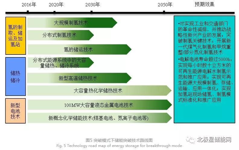 突破模式下的技術(shù)路線應(yīng)該積極探索新材料、新方法,實(shí)現(xiàn)具有優(yōu)勢的先進(jìn)儲能技術(shù)儲備,在液體電池、鎂基電池等新概念化學(xué)電池獲得突破;研究熱化學(xué)儲熱等前瞻性儲熱技術(shù),探索高儲熱密度、低成本、循環(huán)特性良好的新型材料配對機(jī)制;應(yīng)用V2G虛擬儲能前瞻理論,研究服務(wù)與支撐電動汽車推廣應(yīng)用技術(shù)。