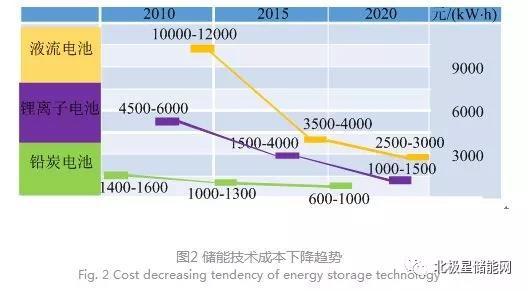 預(yù)計到2020年,目前國內(nèi)安裝量較大的磷酸鐵鋰電池的成本價有望降到人民幣1000元/(kW?h)左右。而隨著各類驗證、示范應(yīng)用以及標(biāo)準(zhǔn)的建立,儲能技術(shù)的安全性也將逐步提升,達(dá)到標(biāo)準(zhǔn)要求。鉛酸電池也在不斷改進(jìn)技術(shù),多家企業(yè)已經(jīng)開始從事鉛碳電池的開發(fā),重點(diǎn)提升鉛酸電池的使用壽命。液流電池相關(guān)制造企業(yè)少,目前液流電池儲能系統(tǒng)的整體轉(zhuǎn)換效率約70%,尚無法與磷酸鐵鋰和先進(jìn)鉛酸電池相比,但在使用壽命方面有明顯優(yōu)勢。