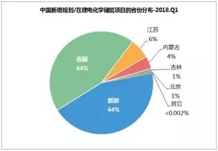 2018年一季度,由于中國新增投運(yùn)電化學(xué)儲(chǔ)能項(xiàng)目的裝機(jī)規(guī)模較小,因此這里僅對新增規(guī)劃/在建項(xiàng)目進(jìn)行分析。