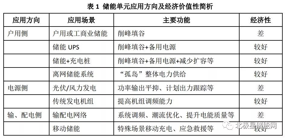 經(jīng)過近幾年儲能產(chǎn)業(yè)同仁的不懈努力推動,儲能產(chǎn)業(yè)的發(fā)展正呈欣欣向榮之勢,規(guī)范和促進儲能產(chǎn)業(yè)發(fā)展的指導文件和基礎政策頻出,而在此背景下,儲能產(chǎn)品在儲能領域的應用市場方向也日益趨于清晰。儲能產(chǎn)業(yè)的發(fā)展離不開電力這個主體,整理儲能產(chǎn)品在電力主體里的應用場景,包括發(fā)、輸、配、用這四個環(huán)節(jié),歸結其功能基本可分為四大類,即調(diào)峰、調(diào)頻、提升電力系統(tǒng)穩(wěn)定性和靈活性以及提升電能質(zhì)量。依據(jù)這儲能產(chǎn)品在電力系統(tǒng)這四大類功能價值,衍伸出許多細分應用領域,而根據(jù)現(xiàn)有電力系統(tǒng)電價特點和相關輔助服務的配套政策,連同其經(jīng)濟收益簡單可歸納如下表。