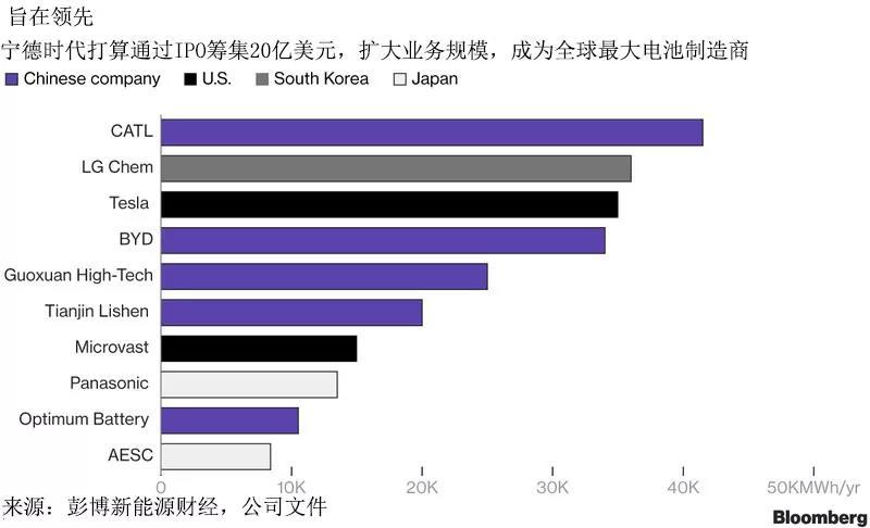 即將進行的首次公開募股將推動寧德時代成為全球最大的鋰離子電池制造商。該公司此前預(yù)計,到2020年銷售額將達到1000億元人民幣,相比2016財年149億元的全年營收有大幅提升。彭博新能源財經(jīng)(BNEF)的數(shù)據(jù)顯示,到2021年,中國占全球電池產(chǎn)量的市場份額將從2017年的54%上升到70%左右。
