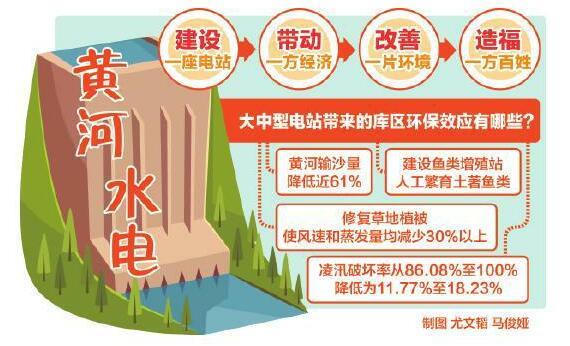 裝機(jī)1083萬千瓦的黃河干流16座水電站不但為我國提供著強(qiáng)大的綠色能源,還為“三江之源”“中華水塔”構(gòu)筑了天然屏障。隨著黃河上游梯級電站的陸續(xù)建成,龍青河段增加了600平方公里的濕地面積。同時(shí),電站梯級水庫的相繼蓄水也為庫區(qū)周邊地區(qū)帶來了降雨、濕度、風(fēng)頻等“庫區(qū)效應(yīng)”,使周邊生態(tài)環(huán)境得到明顯改善。據(jù)了解,龍羊峽水電站每年能為寧蒙灌區(qū)增加有效供水17億立方米,使灌溉保證率由31%提高到86%,每年為下游省市增加有效供水7億立方米,有力地支持了沿黃河地區(qū)經(jīng)濟(jì)社會發(fā)展。