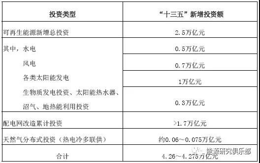 從投資的角度看,綜合能源服務(wù)所涉及的要素中僅可再生能源、配電網(wǎng)改造、天然氣分布式三個領(lǐng)域“十三五”期間的新增投資規(guī)模,預(yù)計(jì)約4.26~4.275萬億元,具體見表3。