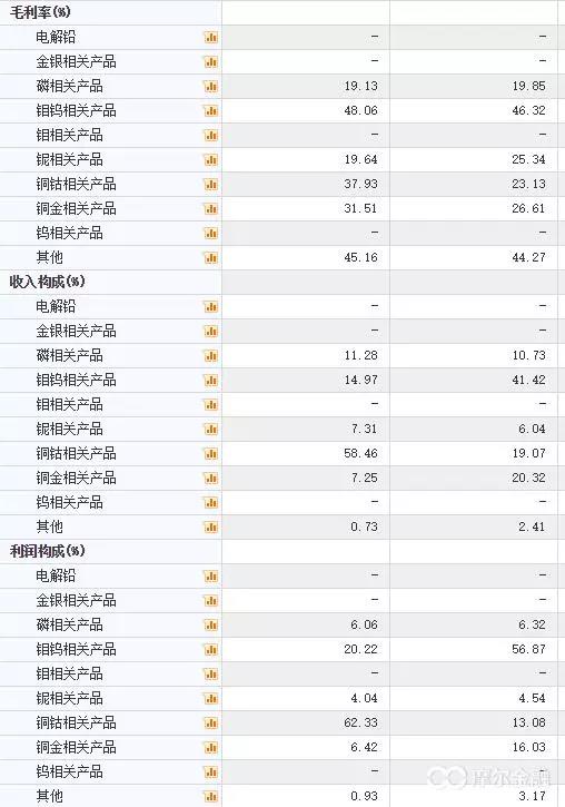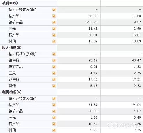 圖為17年中報(bào)與16年年報(bào)對(duì)比,兩家公司在2017年銅鈷產(chǎn)品收入占比顯著提高,毛利率顯著提高。