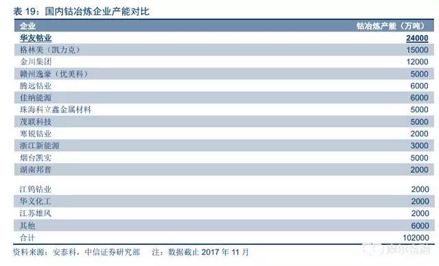 華友鈷業(yè):公司目前鈷產(chǎn)品產(chǎn)能(折合鈷金屬量)達(dá)2.4萬(wàn)噸,居全球第一。