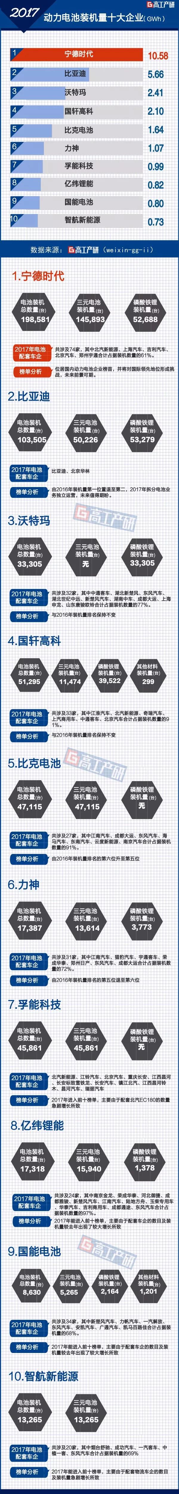 中國(guó)儲(chǔ)能網(wǎng)訊:GGII發(fā)布的《新能源汽車產(chǎn)業(yè)鏈數(shù)據(jù)庫(kù)》統(tǒng)計(jì)顯示,2017年我國(guó)新能源汽車動(dòng)力電池裝機(jī)總電量約36.4GWh,同比增長(zhǎng)29%。其中,裝機(jī)總電量前十動(dòng)力電池企業(yè)合計(jì)達(dá)26.81GWh,占整體的74%。