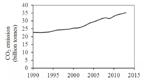 車輛數(shù)量的增長已經(jīng)導(dǎo)致兩個主要問題,即,交通擁堵和二氧化碳(CO2)的排放過量。一般來說,常規(guī)車輛在消耗大約總?cè)剂夏芰?5%[2,3],其余以CO2,一氧化碳,氮氧化物,碳氫化合物,水和其他溫室氣體(GHG)的形式消散熱量; 總氣體排放量的83.7%為CO2 [4] 。CO2排放量,從1990年的227億噸急劇增加至2013的 352.7億噸[5]中,如圖1所示。隨著CO2從1990年開始的緩慢上升,見于圖1,在未來十年,該增長率從2003年至2008年逐年加快。在2013年,排放量減小至3.80-2.00%。二氧化碳是導(dǎo)致全球變暖的溫室氣體之一,這是一個嚴重的全球環(huán)境問題。