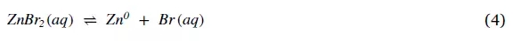 鋅鹵電池包括Zn-Cl2 和Zn-Br2,這些電池在EV能源存儲方面是可行的。1970年開發(fā)了用于電動汽車和靜態(tài)儲能的Zn-Cl2 [14]。Zn-CL2能量密度約90Wh/ L,功率密度約60瓦/千克。Zn-Br2電池適合用于EV能量儲存,其能量密度70瓦時/千克,具有快速充電能力,和低的材料成本 [14,45,70,71]。然而,這種電池類型由于具有較低的比功率(90 W / kg),溴的高反應(yīng)性以及電解液循環(huán)和溫度控制系統(tǒng)尺寸較大,因此近年來在EV中的應(yīng)用已經(jīng)很少[14,45,70]。仍然有研發(fā)正在推進用于車輛的Zn-Br2 電池 [71]。Zi-Br2 電池的整體電化學(xué)反應(yīng)用方程 (4)。