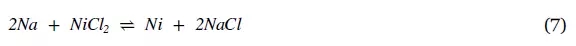 兩種鈉-β電池之間的主要區(qū)別是額外使用的鹽酸鋁鈉(NaAlCl4)作為第二電解質(zhì)[45]。ZEBRA電池的活性材料是熔融鈉作為陽極,固體β-氧化鋁陶瓷作為主要電解質(zhì),熔融鹽酸鋁鈉(NaAlCl4)作為輔助電解質(zhì),以及多孔金屬氯化物(MeCl2)作為陰極[14]。金屬氯化物可以是氯化鎳(NiCl2),氯化鐵(FeCl2)或氯化鎳鐵(Ni-FeCl2)的組合。在Na-S電池中的整個電化學(xué)反應(yīng)如方程 (7)。