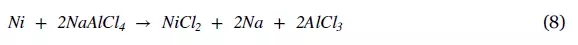 圖11顯示了標有所有元件的ZEBRA電池原型設(shè)計視圖[45,83,87]。充電和放電過程中的電化學(xué)反應(yīng)類似于Na-S電池反應(yīng)過程。當放電時,熔融的Na和NiCl2 被轉(zhuǎn)變成Ni和鹽(NaCl)中,而在充電時過程反轉(zhuǎn)[83],如方程 (7)。如果電池過充電,那么主電解質(zhì)可能被分解,并且熔融的輔助電解質(zhì)NaAlCl4與Ni結(jié)合,從而形成NiCl,熔融Na和AlCl 3,如方程(8)所示,而不是分解NaAlCl4 以Na,Cl2和AlCl3的形式存在[14,45,87]
