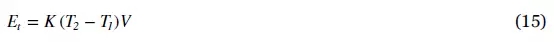 其中Et 是儲存在V體積中的熱能,K是熱系數(shù),T1 和T2 分別是溫升前后的溫度。